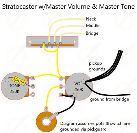 Web the '50s wiring will have two major effects on your tone: The blender wiring has 1 volume, 1 master tone, and a. Web strat master tone wiring.