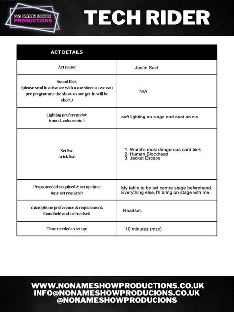 Web download technical rider example. Administrasi a) standar resmi pembayaran honor artis sheila on 7 untuk sekali pementasan adalah sebesar ________________________________ dengan sistem. This document was uploaded by user and they confirmed that they.